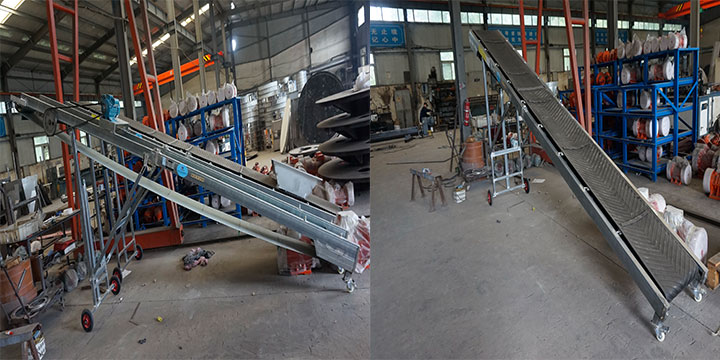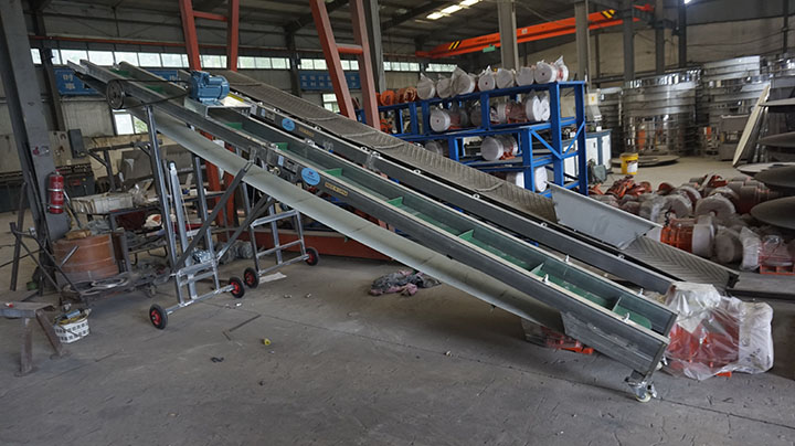 2、可根據(jù)用戶輸送方向設(shè)計為向下輸送,一般用于袋裝物料卸車時使用,輸送量每小時可以達到160噸。