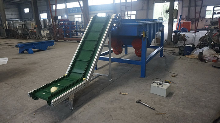 由波紋擋邊帶、基帶橫隔板、機頭傳動滾筒、驅動裝置、改向壓輪、擋邊輪、振打器等組成。